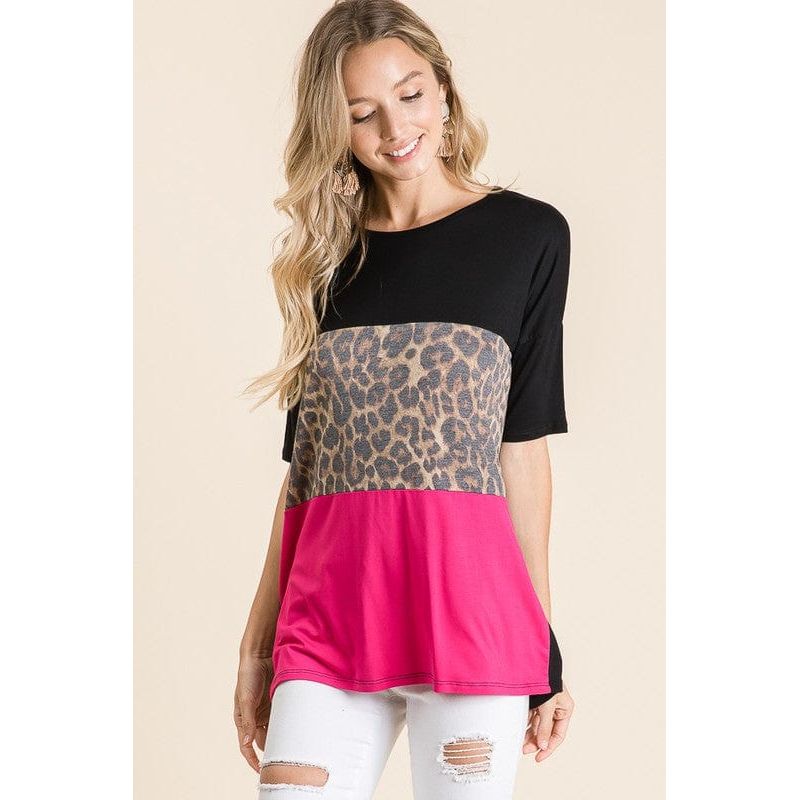 Animal print color block top