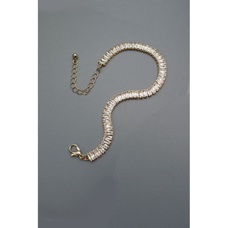 A little edgy a little different a Baguette cut stone bracelet.DIMENSIONlength: 7"ext: 3" Ball Chain Ext