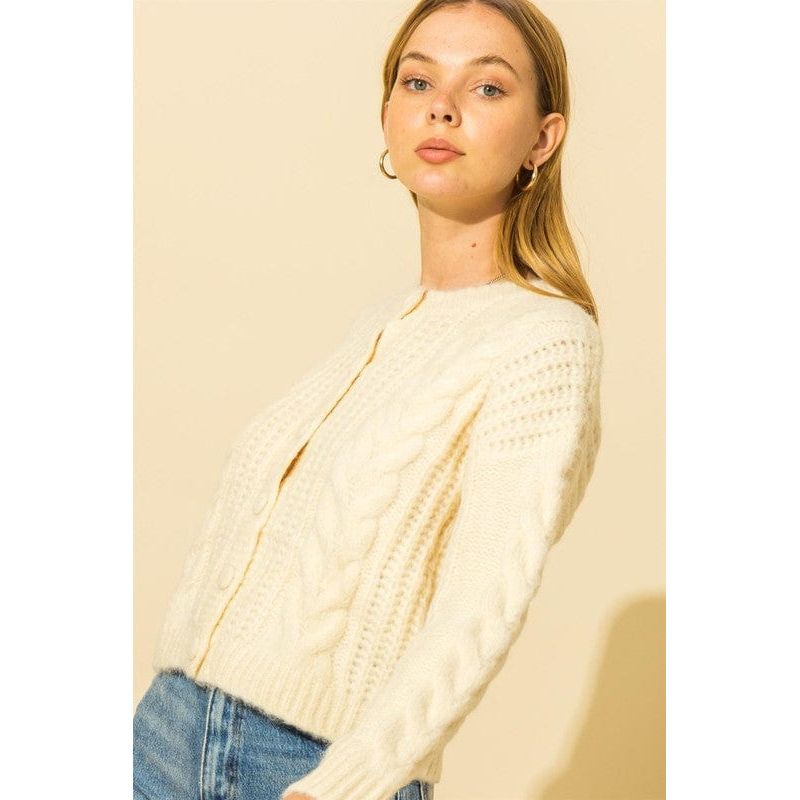 Update your winter wardrobe with our Cable Knit With Button Down Cardigan. Made with a blend of 47% nylon. 33% acrylic. and 20% polyester. this cardigan is both warm and durable. The cable knit design adds a touch of texture. while the button down closure allows for versatile styling options. Available in various sizes. this cardigan is the perfect addition to any outfit.