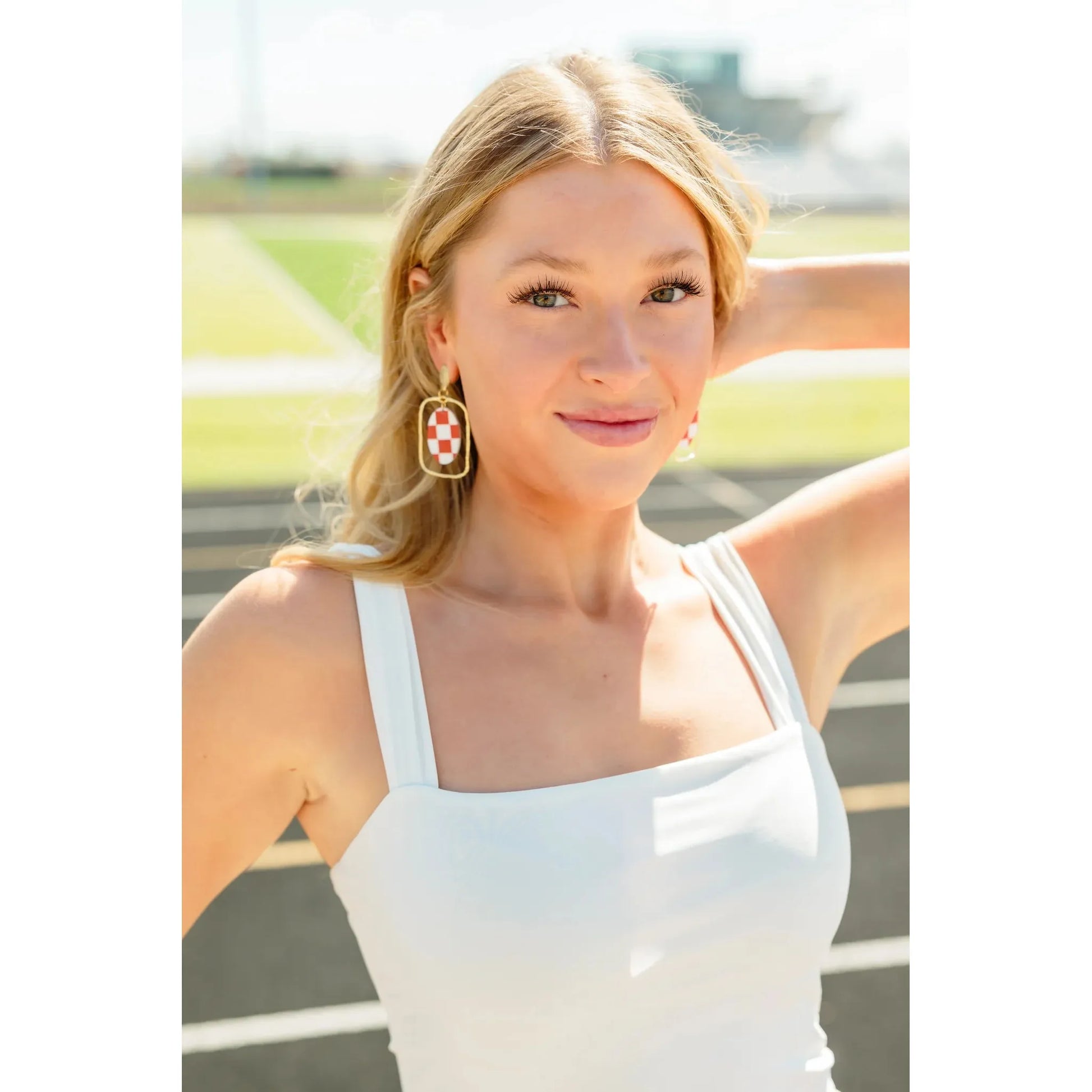 These Checkered Orang Earrings will add a pop of color and sophistication to any outfit! With their unique checkerboard design. these earrings are sure to catch the eye. Made of high-quality materials. they are durable and long-lasting. A must-have accessory for any fashionista!