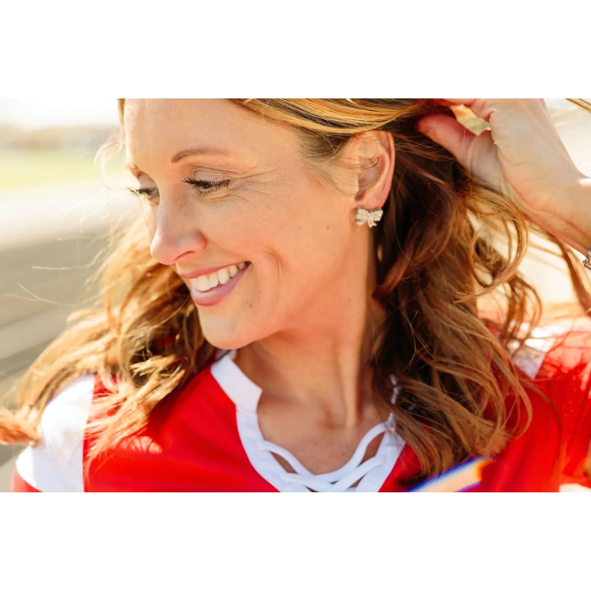Get ready for game day with these stylish and versatile Game Day Bow Studs. These studs are the perfect accessory to add a touch of team spirit to your outfit. Made with high quality materials. these studs are both durable and fashionable. Show off your team pride in style with these Game Day Bow Studs.