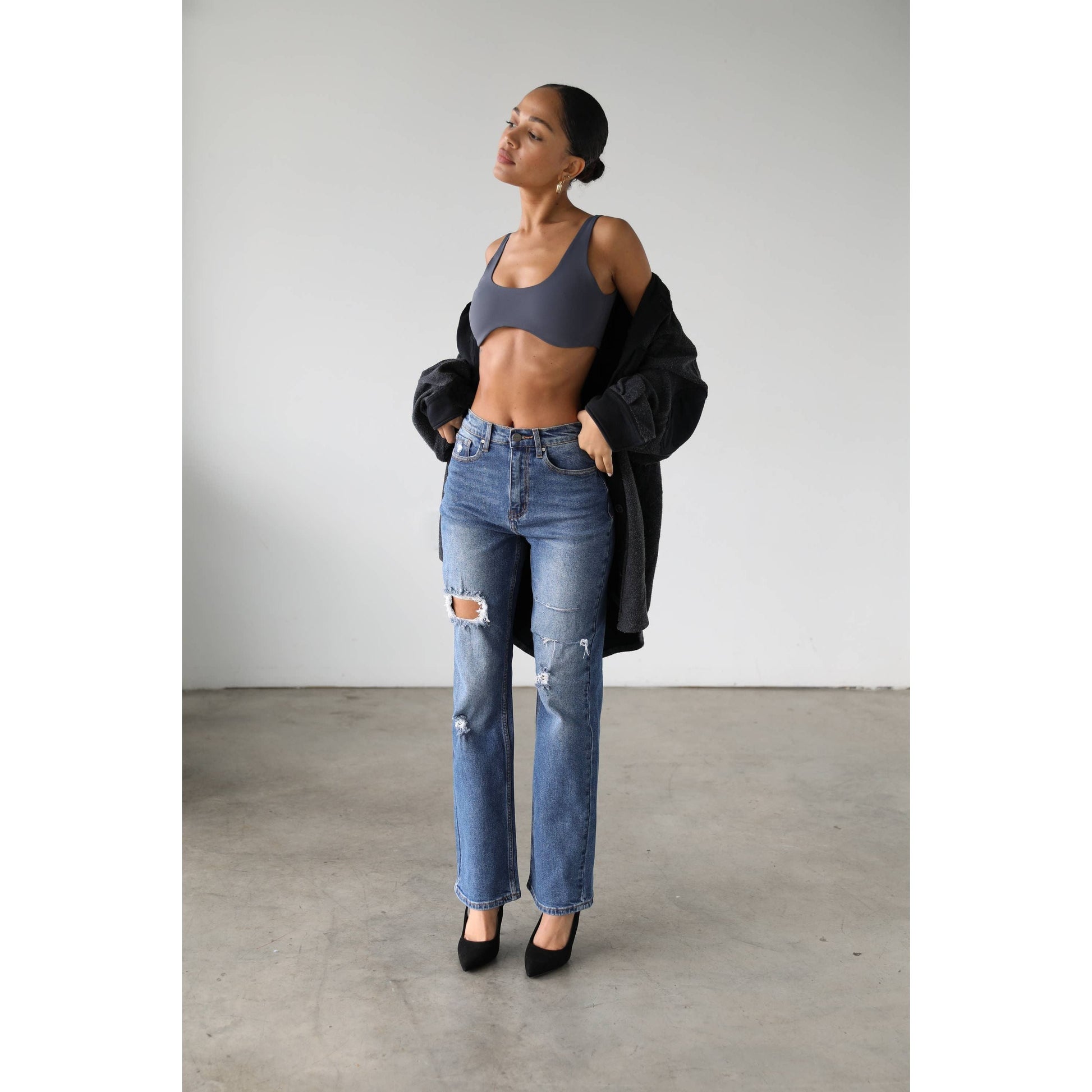 Our DOGMA DENIM High Rise Straight Leg Denim Jeans are the perfect blend of style and comfort. The straight cut provides a timelessly classic look. while the high rise waist ensures a fit that's tailored to your body. Elevate your wardrobe with these fashionable jeans.High Rise Straight JeansComfort Stretch Denim5 PocketsButton And Zipper ClosureRise: 11" Inseam: 33"