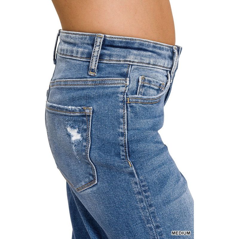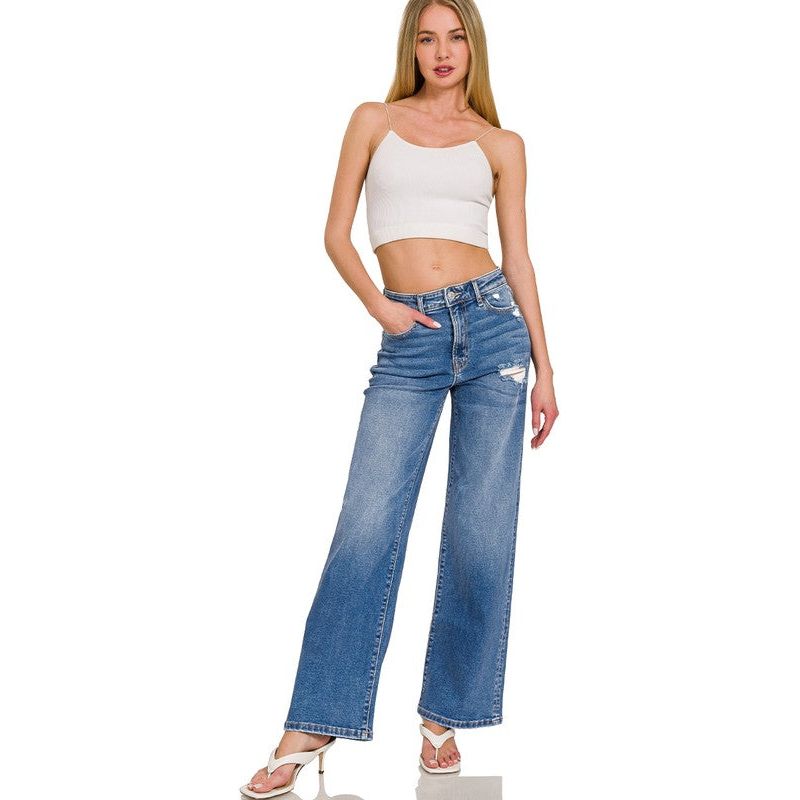 HIGH WAIST STRAIGHT LEG MEDIUM WASH DENIM PANTS