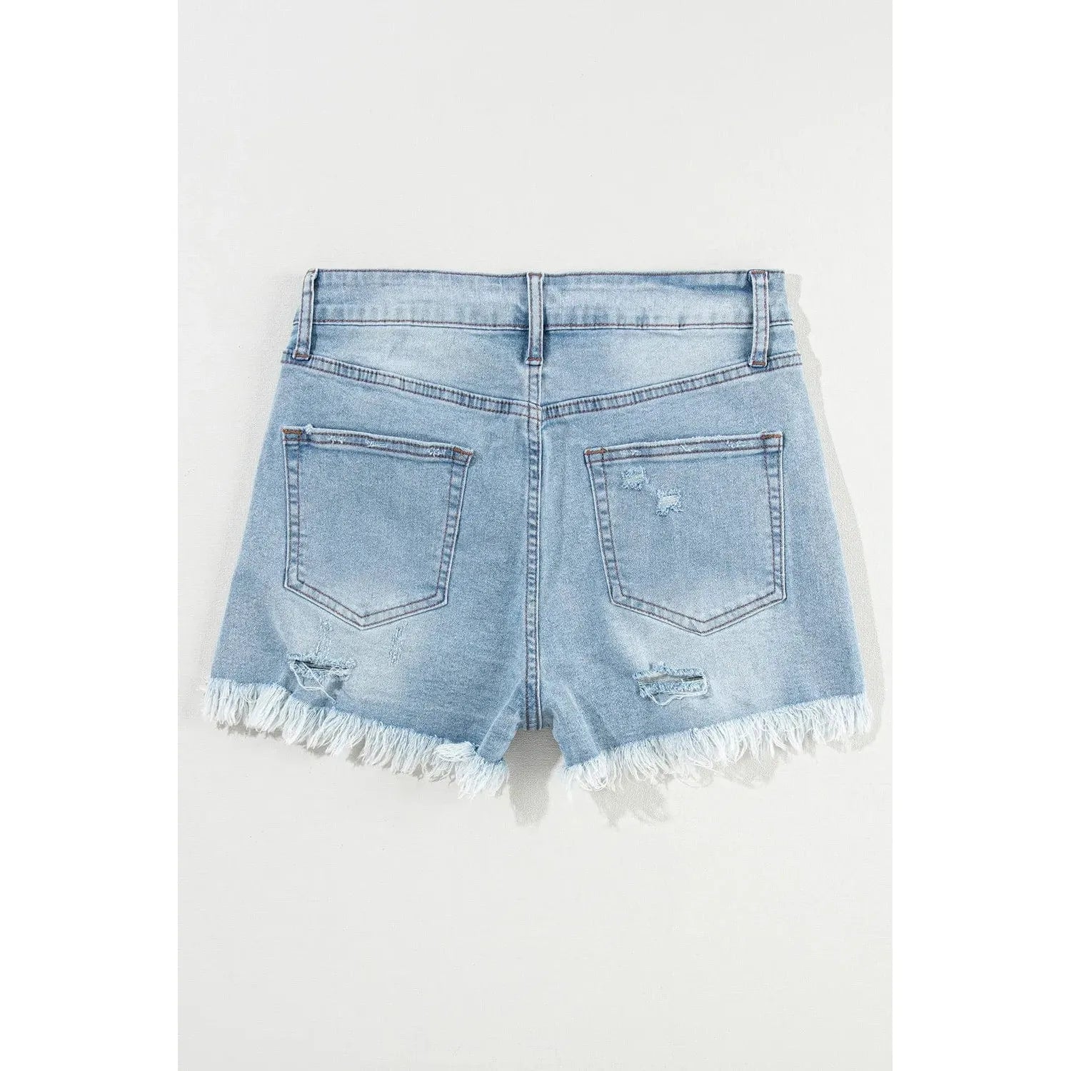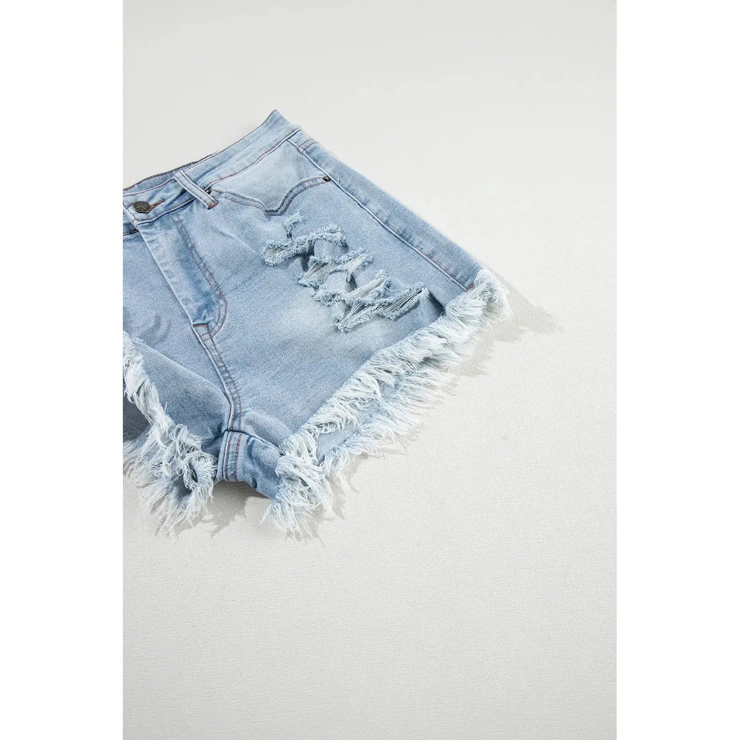 Light Blue Distressed Ripped Raw Hem High Waist Denim Shorts