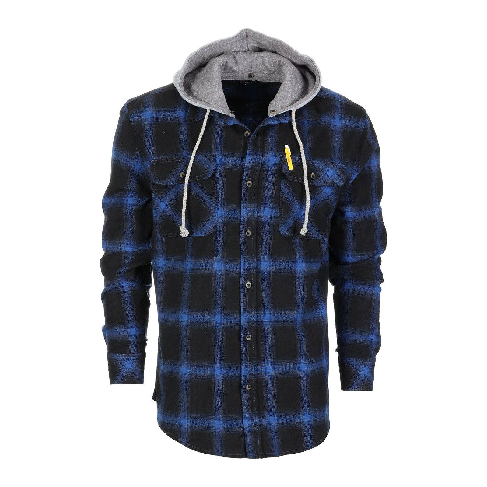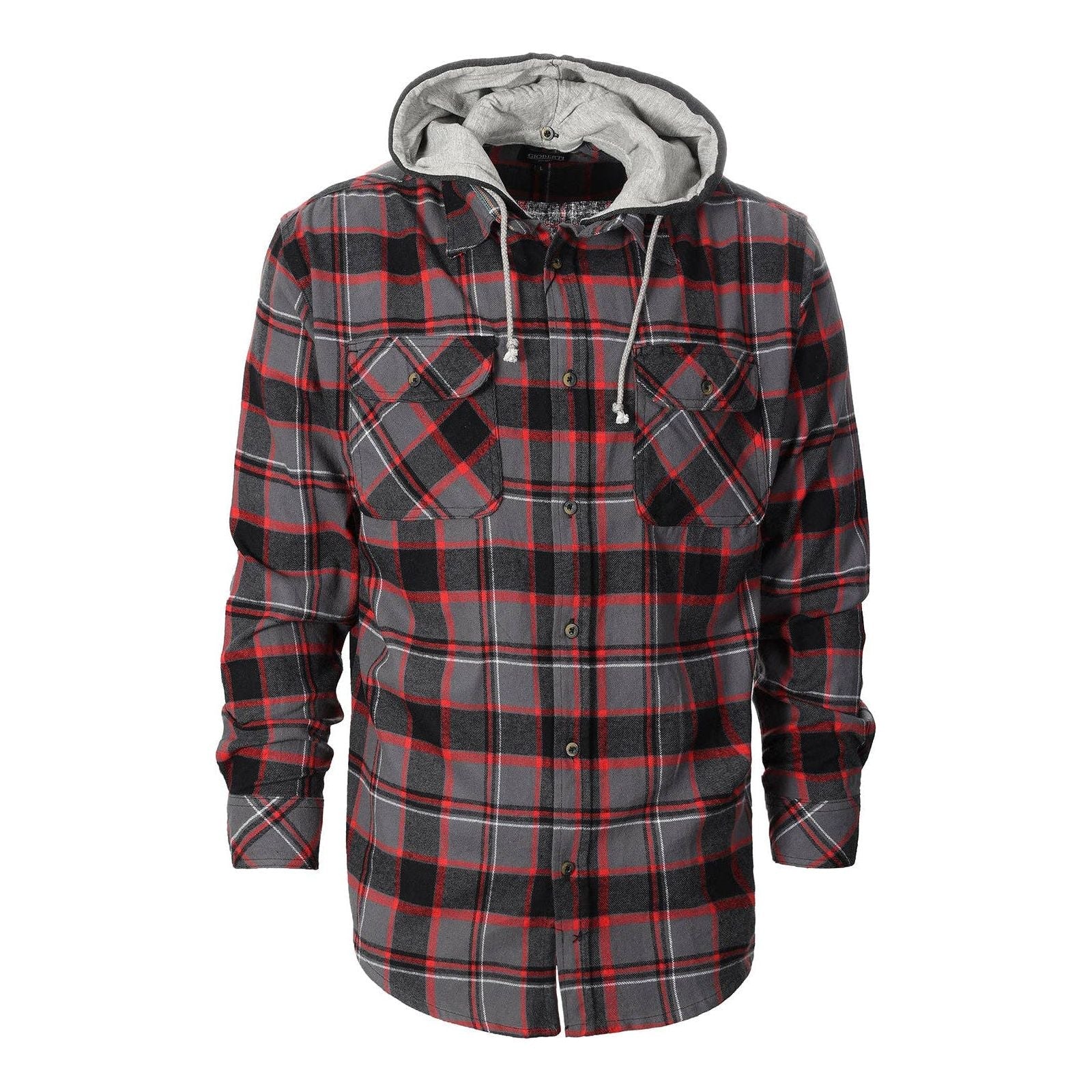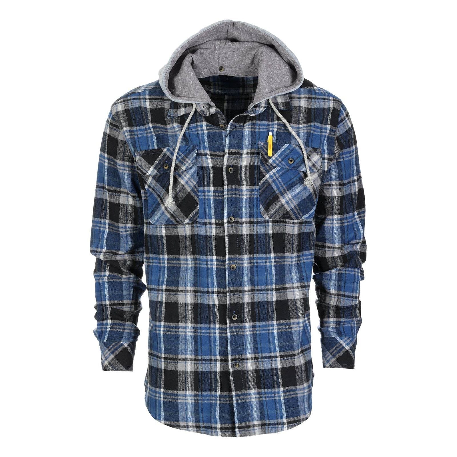 Wholesale Bulk Men's Hooded Flannel Shirt 52% Cotton / 52% Polyester30% Heavier than other brandsBasic Collar. Casual Button Down ShirtDetachable Drawstring Hood2 Front Chest Flap Pockets. Long SleeveSuitable for all types of outdoor activities: camping. fishing. skateboarding. casual date. parties ect�Match it with your favorite t-shirt and jeans. COMFORT in a Two in One MULTI PURPOSE SHIRT: Wear it alone in the cooler Fall and Spring without the hood. For Winter attached the hood even layer it with a jacket. An all year round shirt that must be in your wardrobe. A combination of style and multi use that will make sure that you are fully protected all year round in any weather condition.