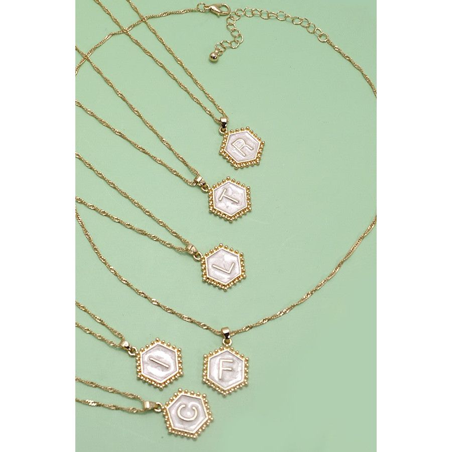 Monogram Initial Hexagon Epoxy Charm Necklace