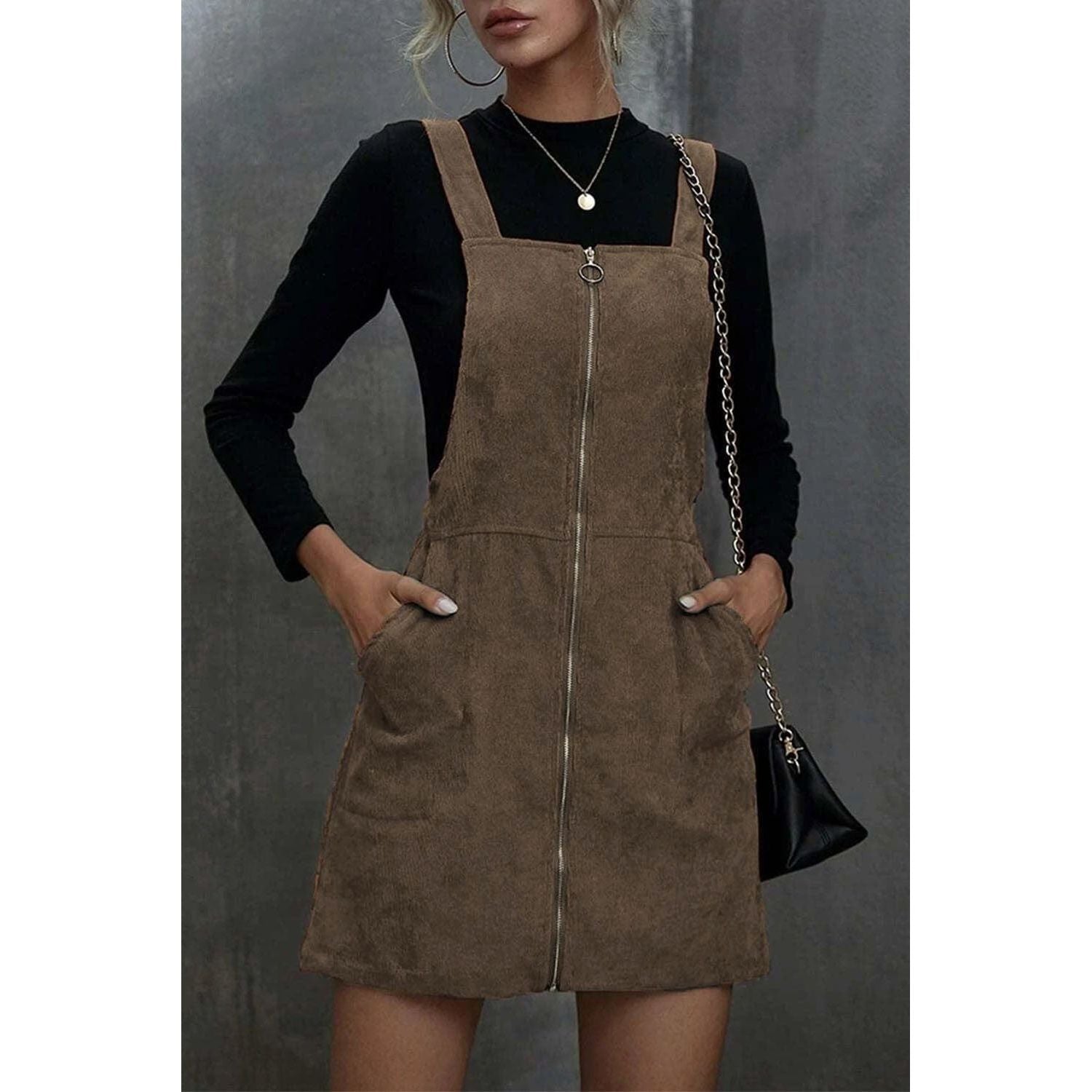 Look stylish and stay warm this season with this O-ring Zip Up Pocketed Corduroy Dress. Crafted from 100% Polyester. it features a full zip-up front with a metal o-ring and two side pockets. making it perfect for chilly days. Add a sophisticated touch to your wardrobe with this must-have dress.