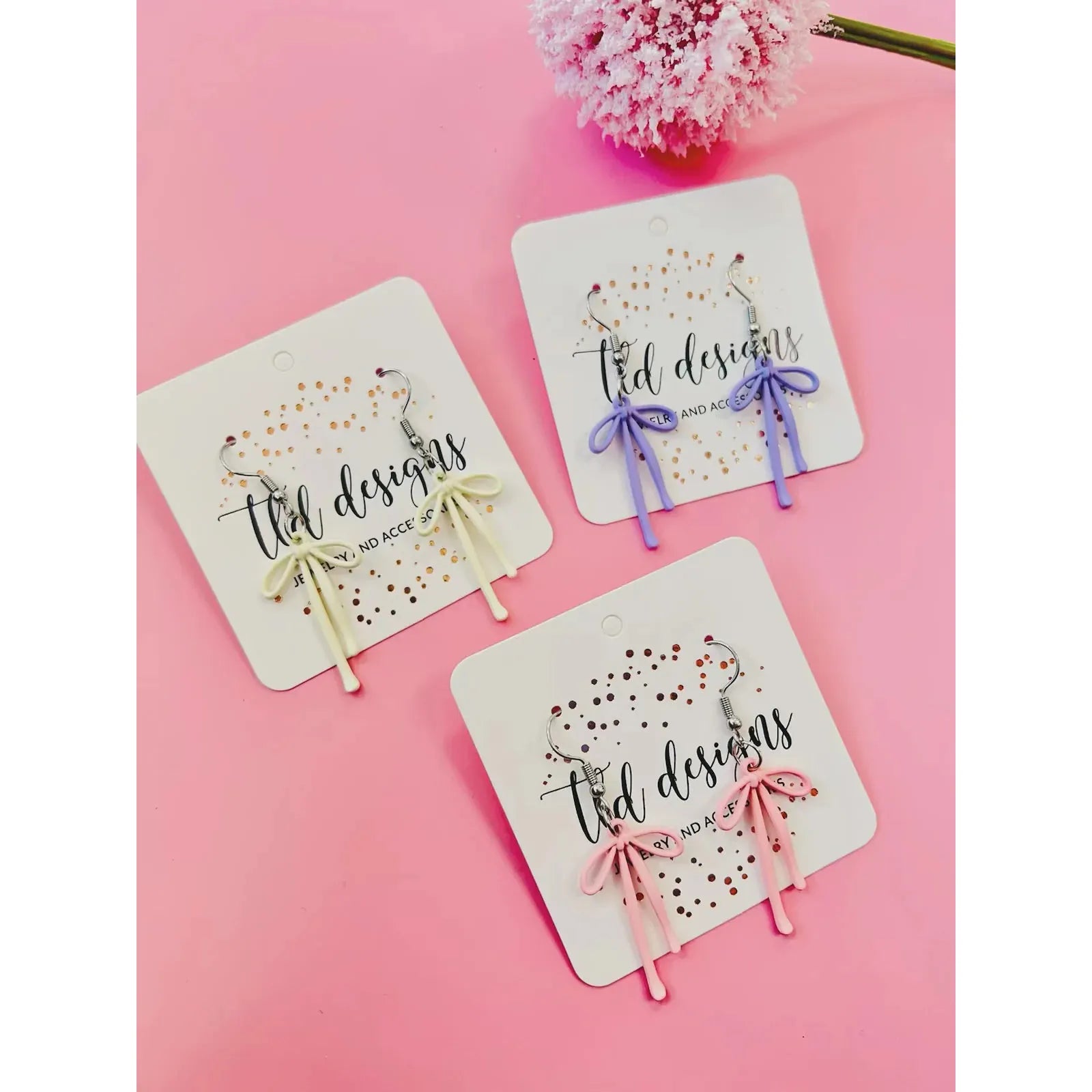 Step up your accessory game with our elegant Pastel Bows Earrings! With their delicate pastel hues and adorable bow design. these earrings are perfect for adding a touch of femininity to any outfit. Elevate your style and feel confident every time you wear them.