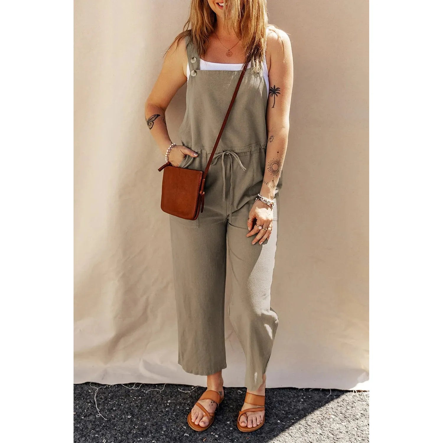 Sage Green Drawstring Buttoned Straps Cropped Overall