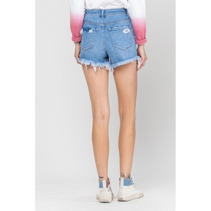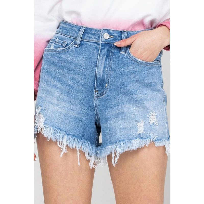 - comfort stretch denim. slightly distressed detail. slouchy fit. rayed hem line. mom jean. high-waisted. 5 pockets