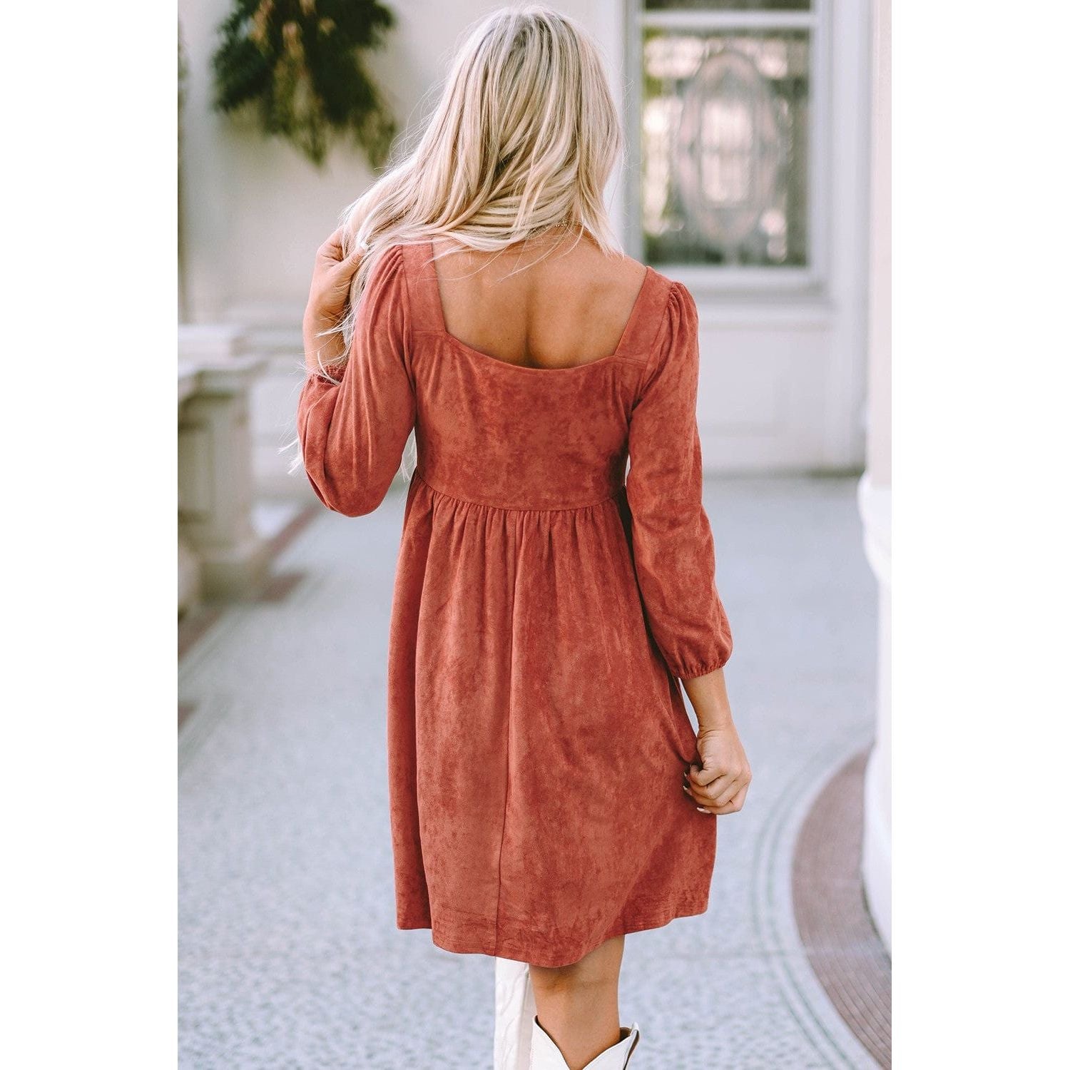Suede Square Neck Puff Sleeve Dress