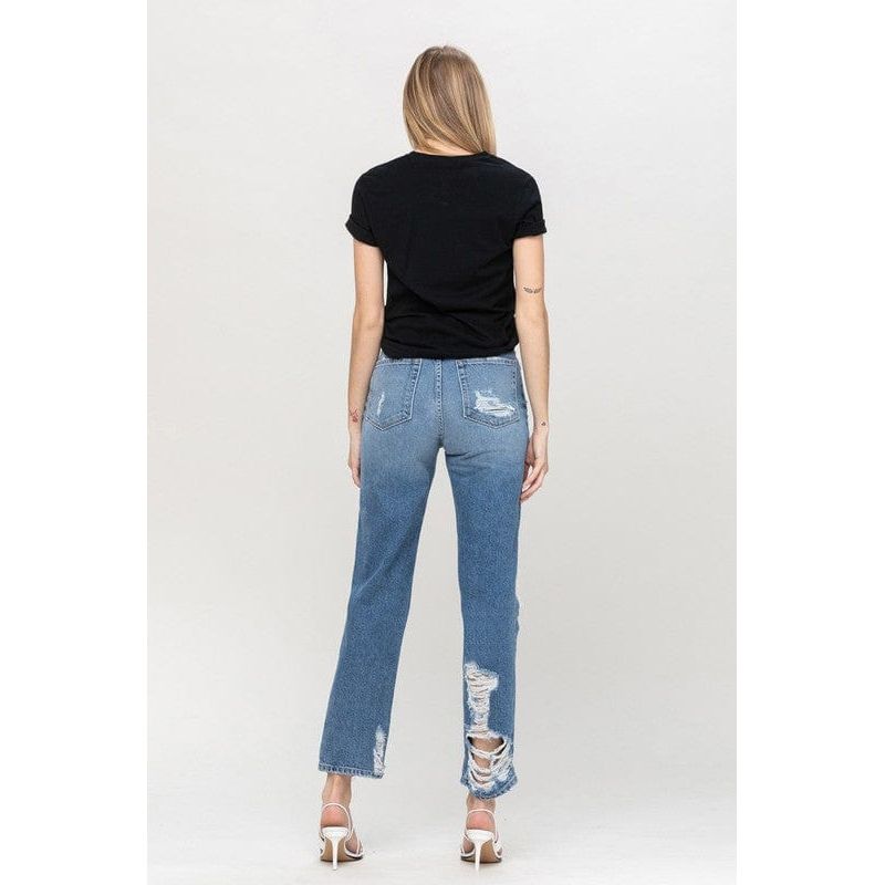 Super high rise tattered ankle straight
