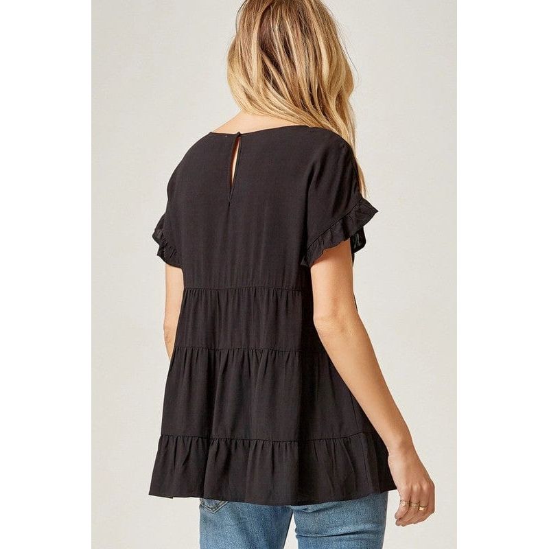 Our favorite babydoll top is finally here! Round neckline. flowy bodice. Lightweight. woven.