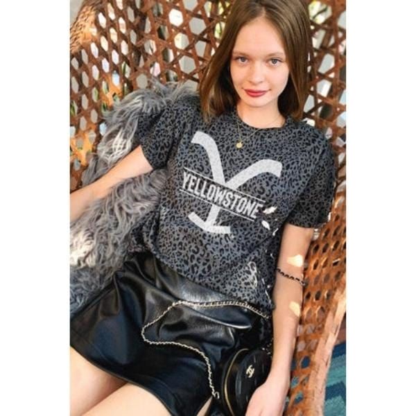 Yellow stone graphic leopard tees